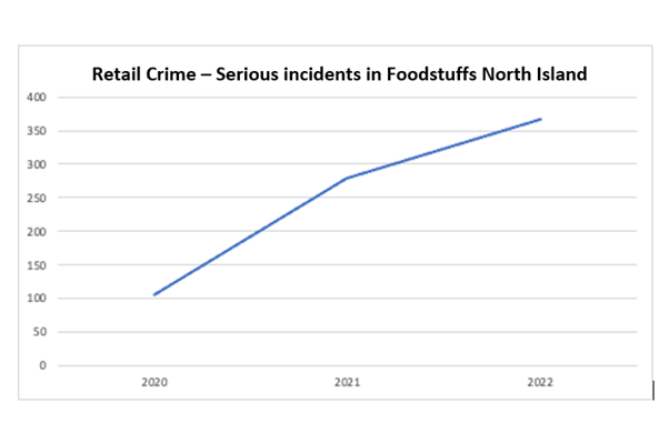 - Serious incidents, theft, burglary, robbery, assault and other aggressive, violent and threatening behaviour in Foodstuffs North Island stores this year are up 31% on 2021.