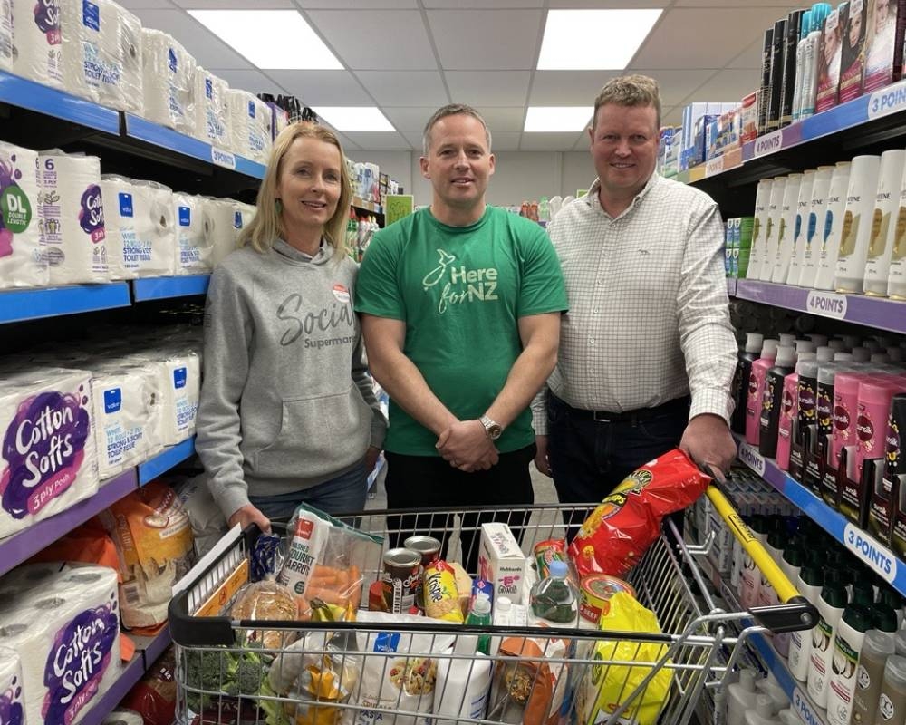 Christina McBeth, Founder of Nourished for Nil, Matt Heap, Owner Operator of PAK’nSAVE Thames and Chairperson of the Here for NZ Committee and Andrew Graney, Owner Operator of PAK’nSAVE Tamatea and buddy store for the social supermarket