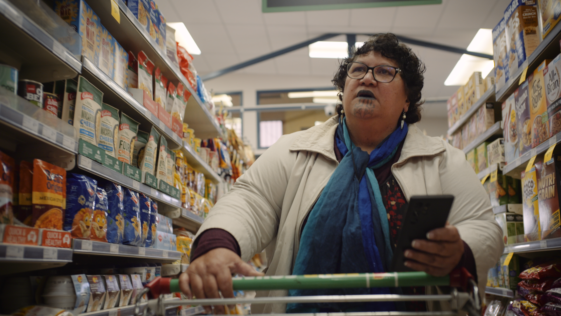 Loyal customer, Mere, uses the Four Square Rārangi Kai shopping list translator during her weekly shop