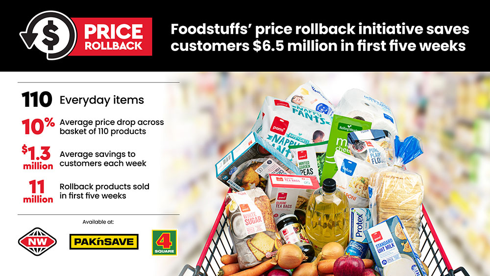 “Averaging at $1.3 million in savings for customers each week, the Rollback Initiative has been funded 100% by Foodstuffs’ co-operative members, who own and operate their store in each community, are on the shop floor every day and committed to their local communities. As a result of this initiative, our stores are selling some items below cost.”